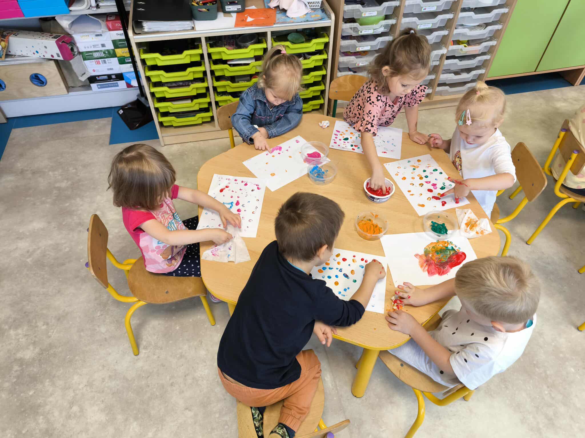 Ten dzień pozwala jeszcze bardziej pobudzić dziecięcą wyobraźnię i kreatywność, ale przede wszystkim daje dobrą zabawę. Wspólnie liczyliśmy, segregowaliśmy kolorowe kropki i bawiliśmy się z kropkami przy muzyce. Dzieci wymyślały co może powstać z kropki i tworzyły ciekawe prace plastyczne. Był to dzień pełen radosnej, twórczej i kreatywnej zabawy.