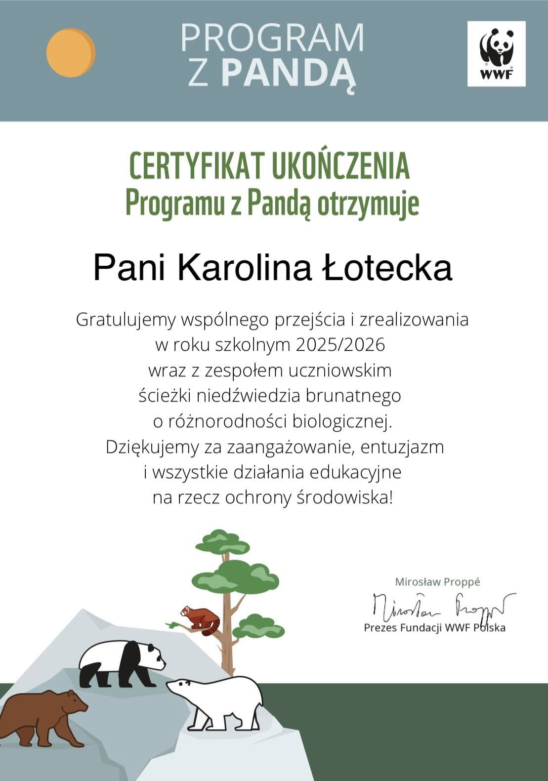 Z radością informujemy, że program WWF „Program z pandą” został pomyślnie zakończony i w pełni zrealizowany przez uczniów klasy 5 w ramach zajęć kółka biologicznego 🐼🌿